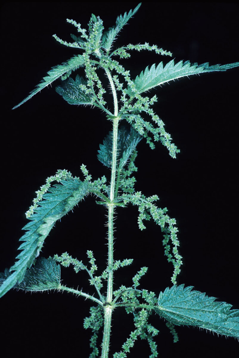 Dioica, con tallos simples o ramificados. Hojas 4–13 x 2–8 cm, opuestas, ovado–lanceoladas, acuminadas, dentado–serradas, de base cordada; pecíolo igualando o de mayor longitud que la mitad del limbo; haz peloso y con pelos urticantes, envés híspido; cuatro estípulas enteras por nudo, ciliadas. Inflorescencias 2 a 9 cm, en racimos espiciformes, ramificadas. Flores tetrámeras; piezas del perianto híspidas; flores femeninas con las dos piezas del perianto internas acrescentes. Aquenio c. 1 x 0,7–0,9 mm