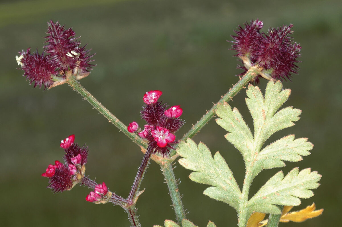 Herbáceas anuales, setosas, heterantas. Tallos ramificados. Hojas 4–15 mm, pinnatisectas, oblongas, con 3–6 pares de segmentos linear–oblongos, dentados, híspidos; las basales envainadoras, las superiores subsésiles, con pecíolo envainador de borde membranáceo. Umbelas compuestas, terminales y opuestas a las hojas, con 2–5 radios desiguales, largamente pedunculadas; brácteas 2–5, estrechamente oblongas, persistentes. Umbélulas con flores hermafroditas sésiles y masculinas pediceladas; bractéolas similares a las brácteas, con margen membranáceo más ancho e híspidas en el nervio medio. Flores actinomorfas, zigomorfas las del borde exterior de las umbélulas, pentámeras. Pétalos reniformes, profundamente bilobulados, los externos de las flores exteriores más grandes, blancos, rosados o purpúreos. Frutos 6–12 mm, ovoides, comprimidos lateralmente, papilosos. Mericarpos con todas las costillas provistas de filas de espinas gloquidiadas, más desarrolladas en las secundarias