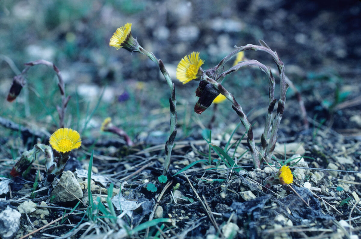 Vivaz, rizomatosa, lanuginosa. Tallos escaposos, erectos, simples, monocéfalos, glandulosos sobre todo en la mitad inferior, con hojas escuamiformes, oblongas o lanceoladas, sésiles, adpresas, ± teñidas de púrpura. Hojas funcionales de aparición tardía, tras la antesis, todas basales, suborbiculares, cordiformes, dentadas o palmatífidas, de envés lanuginoso, largamente pecioladas. Capítulos 15–30 mm de diámetro, radiados, solitarios, terminales, péndulos tras la antesis; involucro cilíndrico–campanulado, con una fila de brácteas oblongo–lineares, glandulosas, de ápice ± purpúreo. Flores externas hemiliguladas, en varias filas, femeninas, amarillas, con la cara externa rosada o purpúrea; las internas flosculosas, amarillas. Aquenios 3–5 mm, estrechamente cilíndricos, con 5 costillas; vilano 9–12 mm, de pelos simples, escábridos, en 1 fila