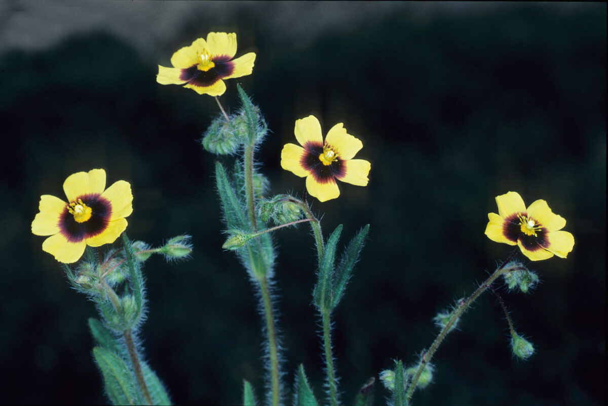 Tallos generalmente ramificados en la mitad o en el tercio superior, con pelos unicelulares, blancos y patentes, y algunos pelos estrellados adpresos. Hojas 4,5–9 x 1,5–2,5(3) cm, con pelos simples en el haz y pelos estrellados y simples por el envés, las inferiores a veces caducas, subespatuladas y oblongas, trinervadas, las medias y superiores de elípticas a linear–lanceoladas, con estípulas. Inflorescencia laxa, densamente pubescente, con pelos estrellados, pelos unicelulares largos, blancos y patentes y pelos pluricelulares cortos y con frecuencia rojizos; pedicelos 7–15 mm, reflejos. Flores actinomorfas, hermafroditas, pentámeras; sépalos 5, los externos de 4,5–7 x (2)3–4,5(5) mm, ovados, asimétricos en la base, glabros o con algunos pelos estrellados en la cara externa, los internos de 5,5–7 x 2,5–4 mm, ovados u ovado–lanceolados, hirsutos; pétalos 7–12 mm, maculados; estambres numerosos; estigma sentado. Cápsula trivalva, coriácea, pubescente en el tercio superior; valvas 3,5–5,5 x 2–3,5 mm, ovadas o elípticas