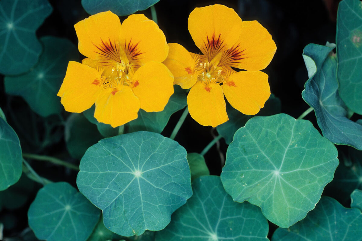 Glabra o glabrescente, algo crasa. Hojas 4–15 cm, alternas, simples, suborbiculares, peltadas. Flores 3–6 cm de diámetro, zigomorfas, hermafroditas, solitarias, axilares; sépalos 5, libres, el dorsal con espolón de 2–4 cm; pétalos 5, libres, amarillo–anaranjados o rojizos, unguiculados, 3 provistos de lacinias en la garganta, los otros 2 con venas rojizas o purpúreas; estambres 8, desiguales; ovario súpero, trilocular. Fruto en esquizocarpo; mericarpos 3, monospermos