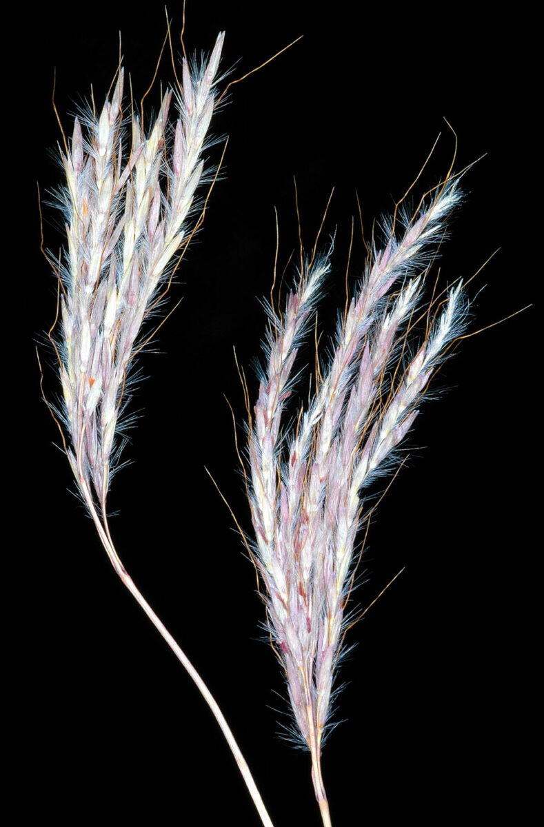 Lámina de las hojas hasta 24 cm x c. 2 mm, plana o conduplicada; lígula 0,5–1,5 mm, pelosa. Inflorescencia subdigitada, con 4–8 racimos de c. 7 cm; entrenudos y pedúnculos con un surco longitudinal translúcido que se ennegrece al secarse, muy pelosos (pelos c. 2 mm). Espiguillas 3,5–4 mm, comprimidas dorsalmente, geminadas, una sésil con 1 flor hermafrodita y otra reducida, la segunda pedicelada, estéril; glumas subiguales, coriáceas, agudas, glabras o aculeoladas; callo peloso; lema de la flor fértil con arista de 10–15 mm, geniculada