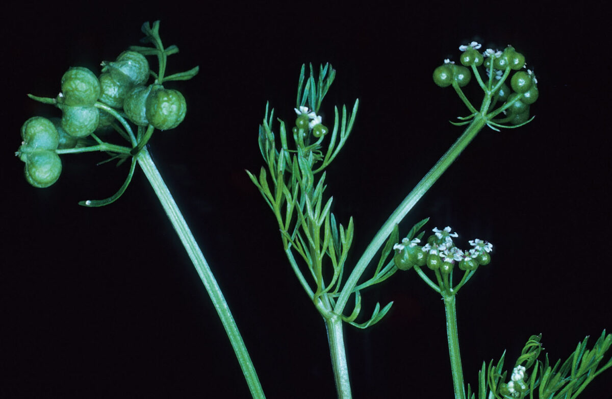 Hierbas anuales, con raíz de olor desagradable. Tallos algo ramificados. Hojas con pecíolo alado, sin vaina, con divisiones de último orden lineares o filiformes; las basales 1–2–pinnatisectas, las caulinares 2–pinnatisectas. Umbelas compuestas, con 1–3 radios; brácteas 0–1, lineares. Umbélulas con 1–2 flores hermafroditas, masculinas o estériles; bractéolas 0–2, lineares. Flores actinomorfas, pentámeras. Pétalos obovados, escotados, con lóbulos casi iguales, homogéneos, blancos, rosados en la cara externa. Estilos 0,1–0,2 mm, recurvados, de igual longitud que el estilopodio. Frutos 2–3,5 mm, testiculados, glabros, de base cordiforme. Mericarpos subglobosos, rugosos