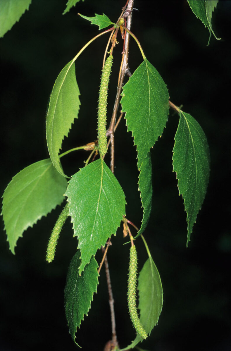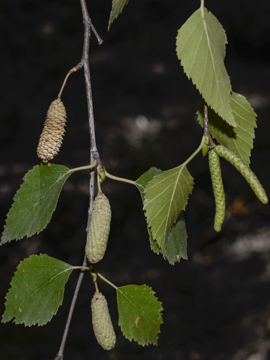 Árbol monoico, de corteza anillada y blanca, exfoliable en láminas papiráceas; ramas péndulas, al menos en los extremos, las del año con glándulas resinosas. Hojas (3,5)4–6(6,5) x 2–5 cm, alternas, simples, ovado–romboidales, apiculadas, de margen doblemente aserrado, pecioladas, glabras, con 6–9 pares de nervios secundarios; estípulas caducas. Inflorescencias en amentos, cilíndricas, las masculinas terminales, precoces. Flores actinomorfas, en grupos de 3 por bráctea; las masculinas con 1 pieza periántica reducida y 2 estambres de filamentos bífidos; las femeninas desnudas, con ovario ínfero. Infrutescencias cilíndricas, pardas, que se deshacen en la madurez; brácteas fructíferas 3–4 x 4–4,5 mm, trilobadas. Fruto sámara, < 0,5 cm, con 2 alas laterales y 2 estilos persistentes que sobrepasan la escotadura apical formada por las alas