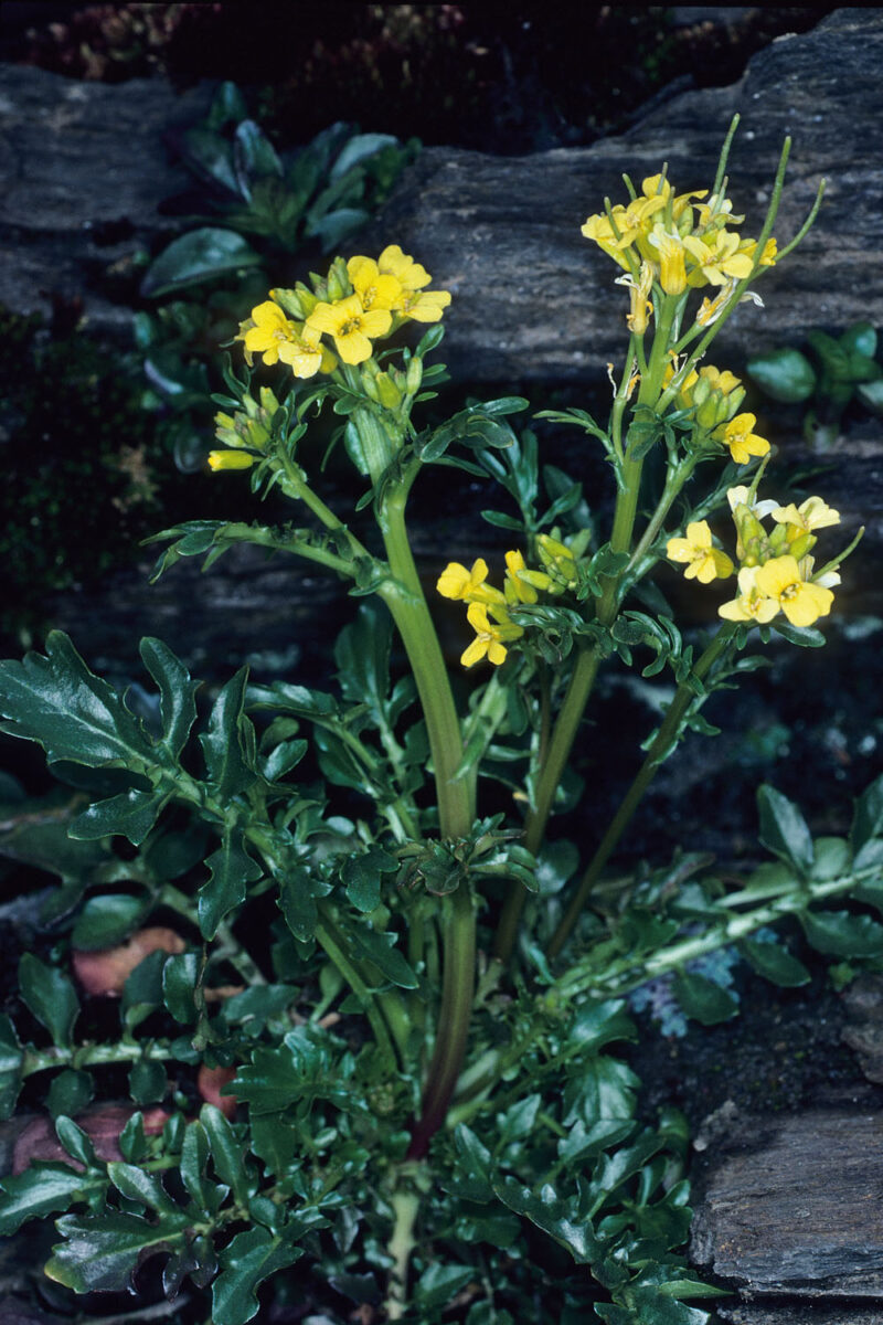 Uni o pluricaule; tallos erectos, estriados, simples o ramificados, con pelos simples. Hojas basales (1,3)5–15 cm, arrosetadas, lirado–pinnatisectas, con (2)6–7 pares de segmentos laterales pequeños, a veces reducidas al segmento terminal de 12–28 x 10–25 mm, ovado–orbicular u ovado–oblongo; las caulinares 3–3,8 cm, alternas, auriculadas, sésiles, todas glabrescentes o pelosas en el margen y raquis. Racimos laxos, que se alargan en la fructificación. Flores actinomorfas, hermafroditas, tetrámeras; sépalos 3–4 mm, verdes, con borde membranáceo; pétalos 6–7 mm, obovados, amarillos; estambres 6, tetradínamos; ovario súpero, con numerosos primordios por lóculo. Frutos en silicua, de 60–75 x c. 2 mm, erectos o erecto–patentes, con el nervio medio de las valvas y el de la sutura prominentes, los secundarios anastomosados; pedicelos 4–5 mm, gruesos; estilo c. 1,2 mm. Semillas 1,8–2 mm, uniseriadas