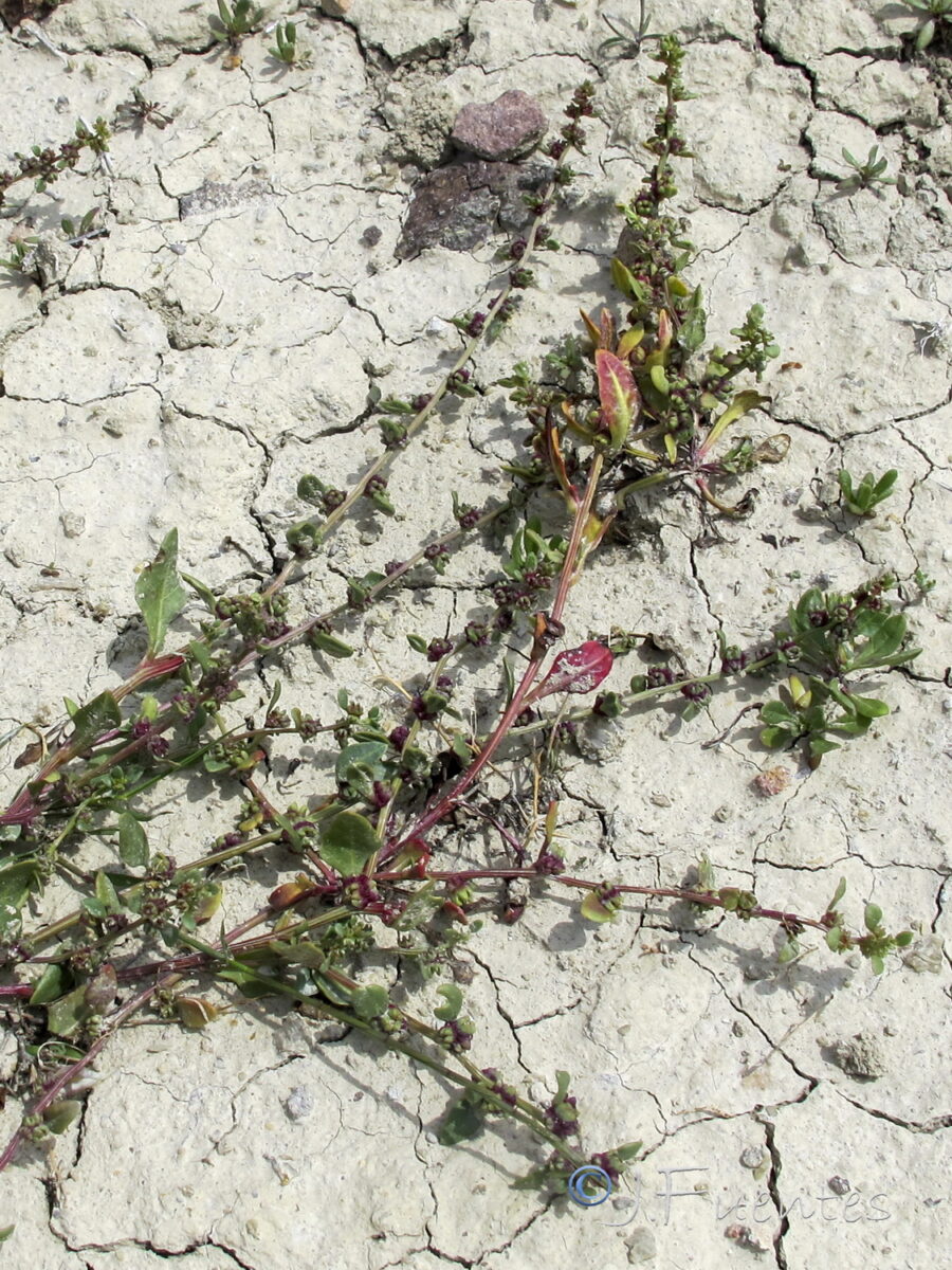 Tallos simples o ramificados, erectos o decumbentes. Hojas 1–7 x 1,5–3(4) cm, alternas, pecioladas, ovadas o lanceoladas, cuneadas. Inflorescencia en cimas axilares dispuestas en espiga laxa, bracteada, poco definida, con flores casi desde la base del tallo; brácteas foliáceas, más largas que las cimas axilares. Flores actinomorfas, hermafroditas, pentámeras. Perianto 1,5–3 mm de diámetro, compuesto de tépalos verdosos, erecto–patentes, acrescentes, que en la fructificación aparecen fuertemente aquillados y de ápice incurvo. Estambres 5, que parten de un disco basal carnoso. Frutos pixidios, reunidos en grupos y soldados en la base, con 1 semilla horizontal