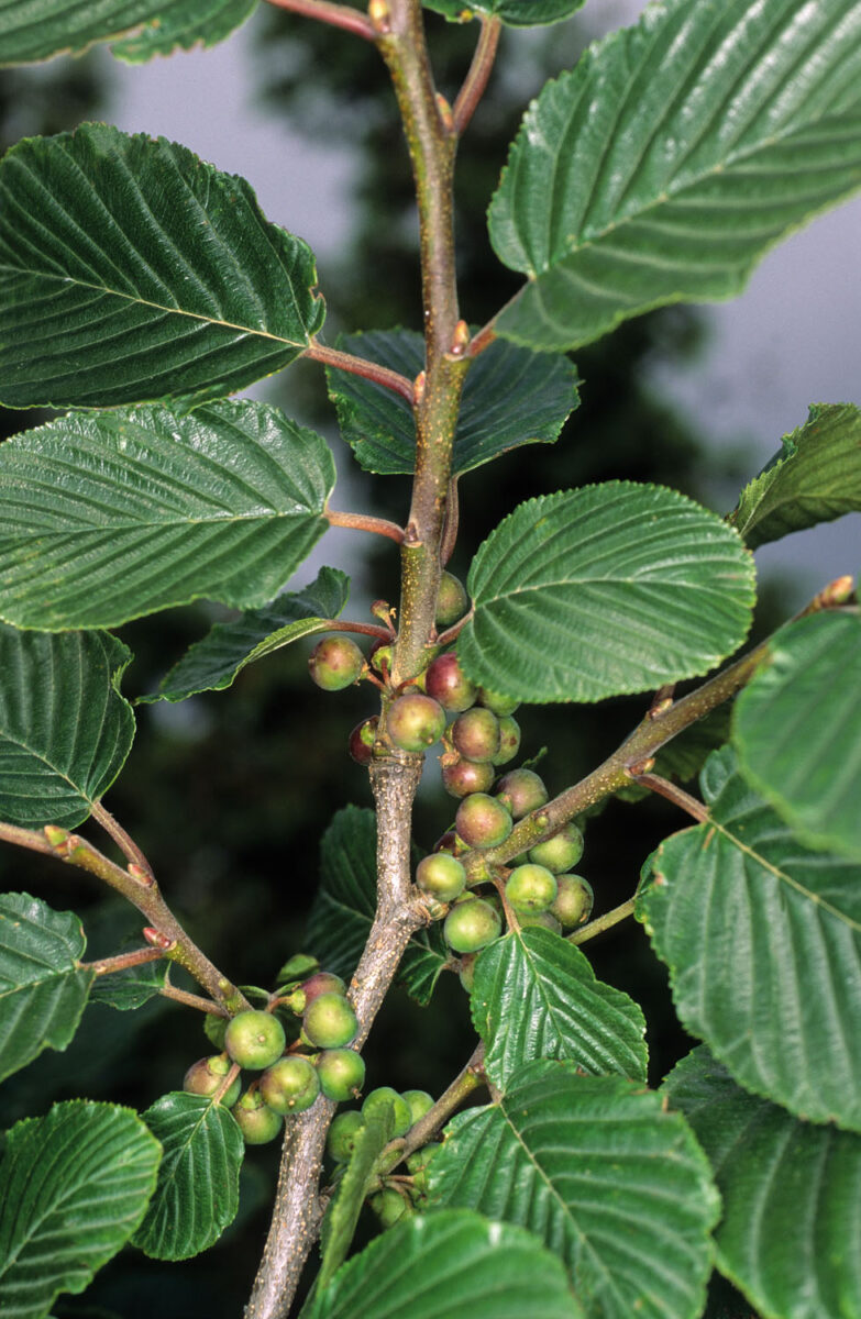 Dioica, erecta, con ramas y ramillas alternas, no espinosas, glabras. Hojas 40–80 x 30–45 mm, alternas, caducas, elípticas, obovadas o suborbiculares, de margen serrulado, pecioladas, glabras, no coriáceas, con (5)10–15 pares de nervios laterales casi rectos. Inflorescencias en fascículos o racimos axilares. Flores pequeñas, casi siempre unisexuales, con pedicelo de 1–3 mm y envuelta acopada (hipanto); cáliz 1,5–2,2 x 0,9–1,5 mm, con 4 sépalos triangulares, verde–amarillentos, soldados en la base; corola con 4 pétalos pequeños; estambres 4; ovario súpero, con 2–3(4) cavidades. Fruto drupa, de 3,5–5,1 mm, globoso, negro–azulado, con (2)3(4) huesecillos