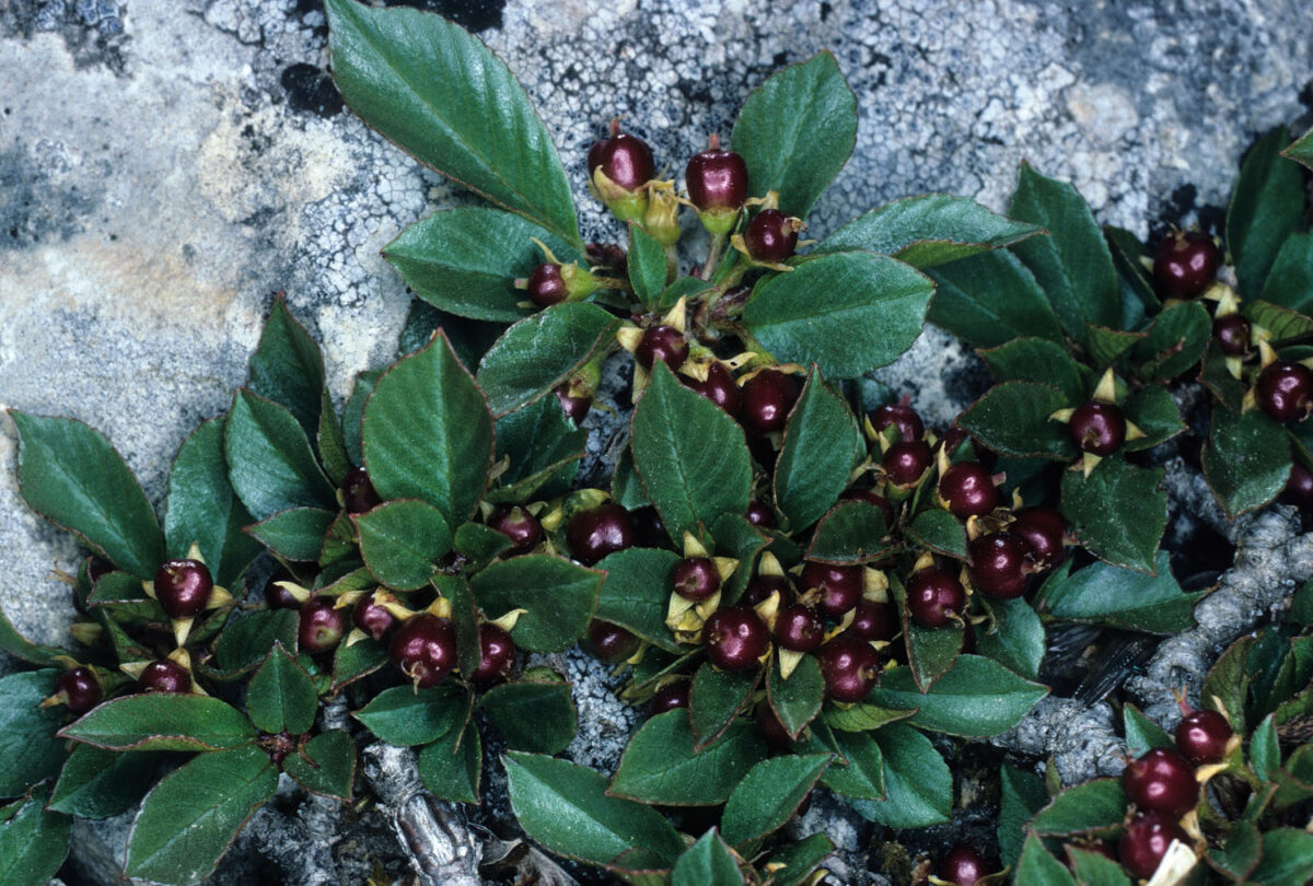 Decumbente, con ramas y ramillas alternas, no espinosas, glabras. Hojas 15–30 x 11–15 mm, alternas, caducas, de obovadas a elípticas, de margen serrulado, cortamente pecioladas, glabras, no coriáceas, con 4–9(13) pares de nervios laterales arqueados. Inflorescencias en fascículos o racimos axilares. Flores pequeñas, unisexuales, con pedicelo de 1–3 mm y envuelta acopada (hipanto); cáliz 1,3–2 x 0,9–1,3 mm, con 4 sépalos triangulares, verde–amarillentos, soldados en la base; corola ausente; estambres 4; ovario súpero, con 2–4 cavidades. Fruto drupa, de 2,5–3,5 mm, globoso, verde o algo rojizo, con 2–4 huesecillos