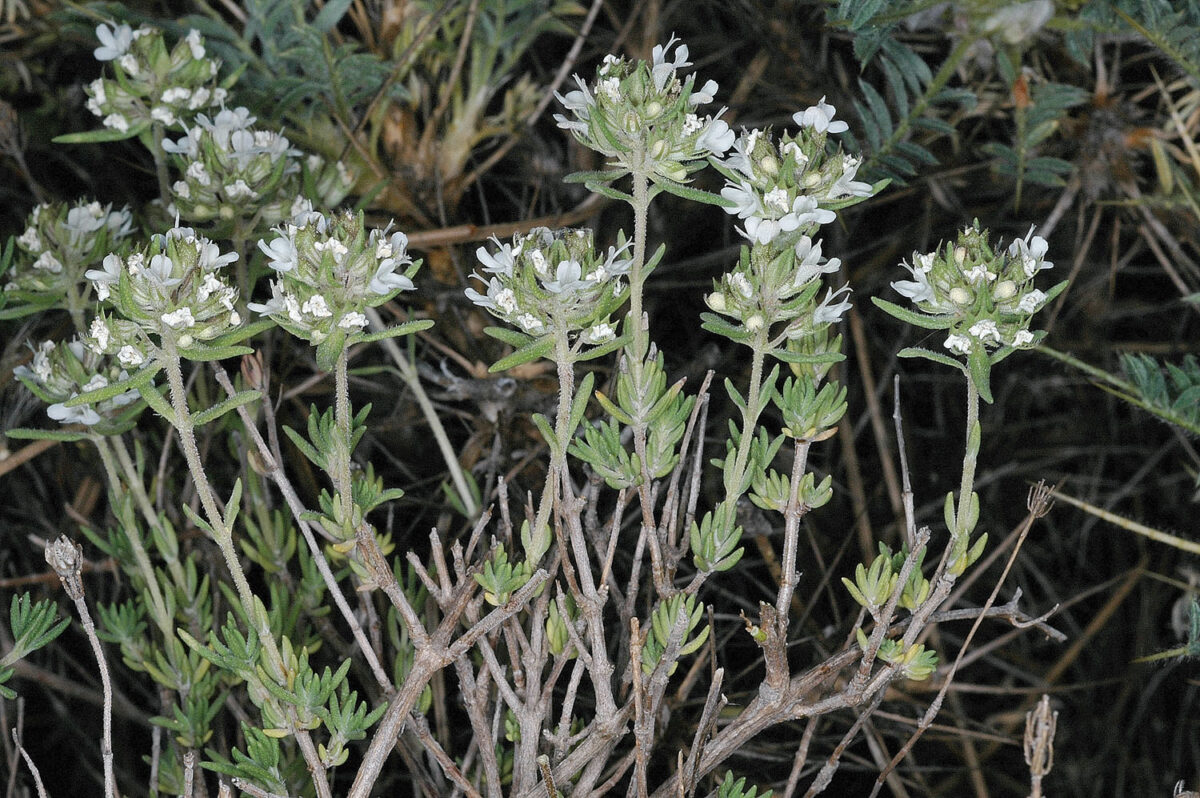 Planta rastrera o suberecta, densamente pelosa. Tallos decumbentes, postrados, o suberectos, a menudo radicantes, pubérulos o pubescentes. Hojas 5–10 x 0,5–1 mm, lineares, revolutas, ciliadas en la base, pubescentes por el haz y pelosas por el envés. Inflorescencia en general capituliforme, con brácteas más anchas que las hojas. Cáliz 4–5 mm, bilabiado, estrechamente acampanado, con tubo igual o más largo que los labios, generalmente peloso; dientes superiores 0,7–1,5 mm, sin cilios o con éstos muy cortos. Corola hasta 5 mm, bilabiada, generalmente blanca o crema, con labio superior plano y ± profundamente escotado, el inferior con lóbulo central más grande