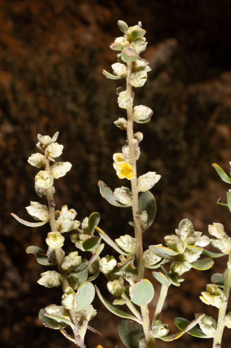 Mata o pequeño arbusto, trimonoica o dioica, con las hojas aglomeradas en el extremo de los tallos, serícea, blanquecina o amarillenta. Hojas 5–10 x 1–6 mm, alternas, linear–oblanceoladas o espatuladas, coriáceas, de haz pubescente o seríceo y envés seríceo. Inflorescencias en fascículos laterales, axilares, bracteados, con 2–5 flores. Flores 3,5–5,5 mm, actinomorfas, unisexuales o hermafroditas, tetrámeras, apétalas; hipanto 2–3,5 mm, seríceo; sépalos 1,5–2 mm, petaloideos, amarillos. Estambres 8. Ovario súpero. Fruto 2,5–3,5 mm, nuciforme, encerrado en el hipanto