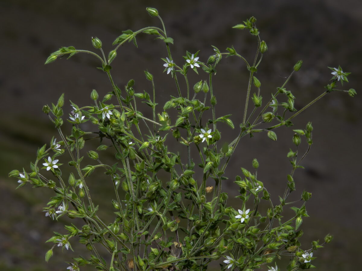 Tallos simples o ramificados, pubescentes, con pelos retrorsos. Hojas 4–6 x 2–3,5 mm, opuestas, ovadas o elípticas, agudas, trinervadas, con nervios gruesos ramificados, pubescentes, con margen ciliado, las basales subespatuladas. Cimas de dicasios compuestos; pedicelos hasta 10 mm en la fructificación, pubescentes con escasos pelos glandulíferos. Flores actinomorfas, hermafroditas, pentámeras. Sépalos 3–4,5 mm, ovado–lanceolados, agudos, trinervados, con nerviación prominente, los internos con ancho margen escarioso, pubescentes con escasos pelos glandulíferos. Pétalos de longitud 1/2 de la de los sépalos, enteros, blancos. Estilos 3. Cápsula exerta, ovoidea, con 6 dientes. Semillas reniformes, tuberculadas, negras