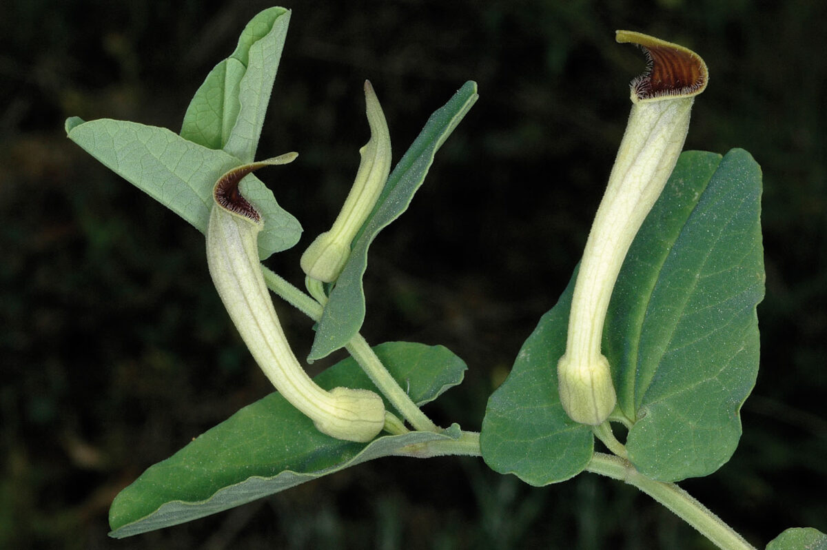 Rizoma tuberoso, cilíndrico o fusiforme. Tallos numerosos, ascendentes, glabros o ligeramente pubescentes. Hojas alternas, palmatinervias; pecíolo (0,2)0,5–1(1,8) cm, limbo 2–6 x 1,8–5,2 cm, cordado–ovado o cordado–suborbicular, entero, obtuso o ligeramente escotado, de envés verde oscuro. Flores 3,5–7(9,2) cm, hermafroditas, zigomorfas, solitarias, axilares, pedunculadas; perianto simple, petaloideo, tubular, recto, de color pardo verdoso con 5–7 líneas oscuras, inflado en la parte basal y prolongado en un limbo lanceolado y unilateral en el ápice. Estambres 6, soldados al gineceo. Ovario ínfero, con 6 carpelos. Cápsula 2–2,5 x 1,8–2 cm, subglobosa o piriforme, reflexa, dehiscente en 6 valvas