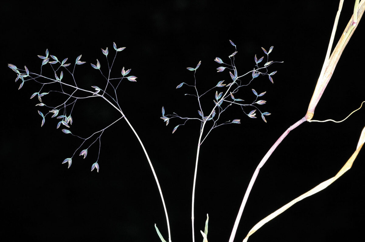 Lámina de las hojas hasta 10 cm x 2–3(4) mm, plana; lígula hasta 4 mm, membranácea, aguda, lacerada. Panícula hasta 10 cm, laxa, difusa, con ramas capilares y algo flexuosas, lisas o escasamente escábridas. Espiguillas 1,3–2,5 mm, con 2 flores; pedúnculos de 1–3 veces el tamaño de las espiguillas, lisos, claviformes; raquilla lampiña y prolongada más arriba de la flor superior; glumas 1,3–2,5 mm, subiguales, encerrando a las flores, oval–naviculares, subagudas u obtusas, la inferior uninervada, la superior trinervada; lema 0,5–1,2 mm, membranáceo, trinervado, de ápice truncado y trilobulado; pálea un poco más corta que el lema. Anteras 0,8–1,5 mm, sobrepasando al lema