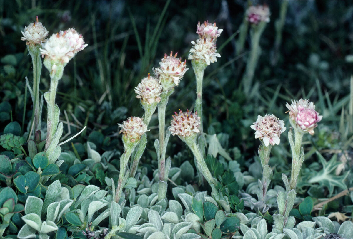 Vivaz, cespitosa, blanco–tomentosa, con estolones epigeos, dioica. Tallos erectos, simples. Hojas alternas, las basales hasta 1,5 cm, arrosetadas, obovado–espatuladas, obtusas, de haz verde–tomentoso y envés blanco–tomentoso. Capítulos 6–10 mm, discoides, terminales, solitarios o en grupos de 2–5, cortamente pedunculados; involucro con varias filas de brácteas, espatuladas en las plantas masculinas y oblongo–obovadas en las femeninas, con la mitad superior escariosa y de color blanco o rosado; receptáculo sin escamas interseminales. Flósculos blancos o rosáceos, los masculinos tubulosos, los femeninos tubuloso–filiformes. Aquenios 1,2–1,5 mm, oblongoideos, glabros; vilano 5–6 mm, de pelos simples, escabriúsculos, blancos, los de los capítulos masculinos ensanchados en la parte superior