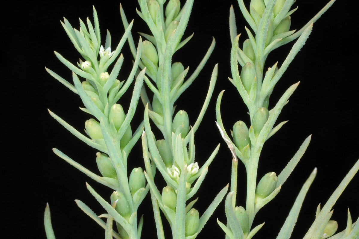 Hemiparásita, anual, de tallos floríferos con frecuencia solitarios. Hojas alternas, lineares, ligeramente suculentas, uninervadas. Inflorescencia espiciforme. Flores actinomorfas, hermafroditas, pentámeras, subsésiles, con una bráctea y 2 bractéolas, éstas últimas más largas que las flores y los frutos. Perianto 2–2,5 mm de diámetro, monoclamídeo, pentámero, rotáceo, de color verdoso. Estambres 5. Ovario ínfero, unilocular. Aquenio elipsoidal, coronado por el perianto persistente, fuertemente reticulado y cortamente pedicelado, con 1 semilla