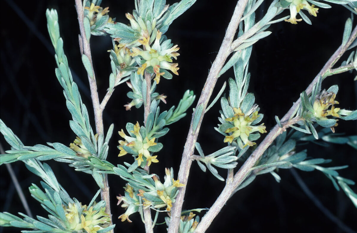 Mata ginodioica, serícea, argéntea, con pelos de 0,3–0,5 mm, adpresos. Hojas 5–8 x 1–2 mm, alternas, linear–oblanceoladas, seríceas. Inflorescencias en fascículos terminales, en el extremo de braquiblastos foliosos, con 5–8 flores y brácteas foliáceas. Flores 4–6 mm, actinomorfas, hermafroditas o femeninas, tetrámeras, apétalas; hipanto 3–4 mm, seríceo; sépalos 1–2 mm, petaloideos, de un amarillo sucio o marrón claro. Estambres 8. Ovario súpero. Fruto 2,5–3,5 mm, nuciforme, encerrado en el hipanto