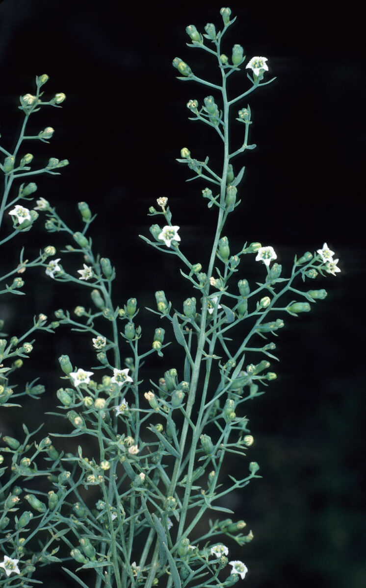 Hemiparásita, perenne, de base ± leñosa y ramificada. Hojas alternas, lineares, uninervadas. Inflorescencia paniculiforme, más o menos laxa. Flores actinomorfas, hermafroditas, pentámeras, con una bráctea y 2 bractéolas en cada pedicelo, éstas últimas más cortas que las flores y los frutos. Perianto 3–4 mm de diámetro, monoclamídeo, pentámero, acampanado, de color verdoso. Estambres 5. Ovario ínfero, unilocular. Aquenio elipsoidal, coronado por el perianto persistente, poco reticulado y cortamente pedicelado, con 1 semilla
