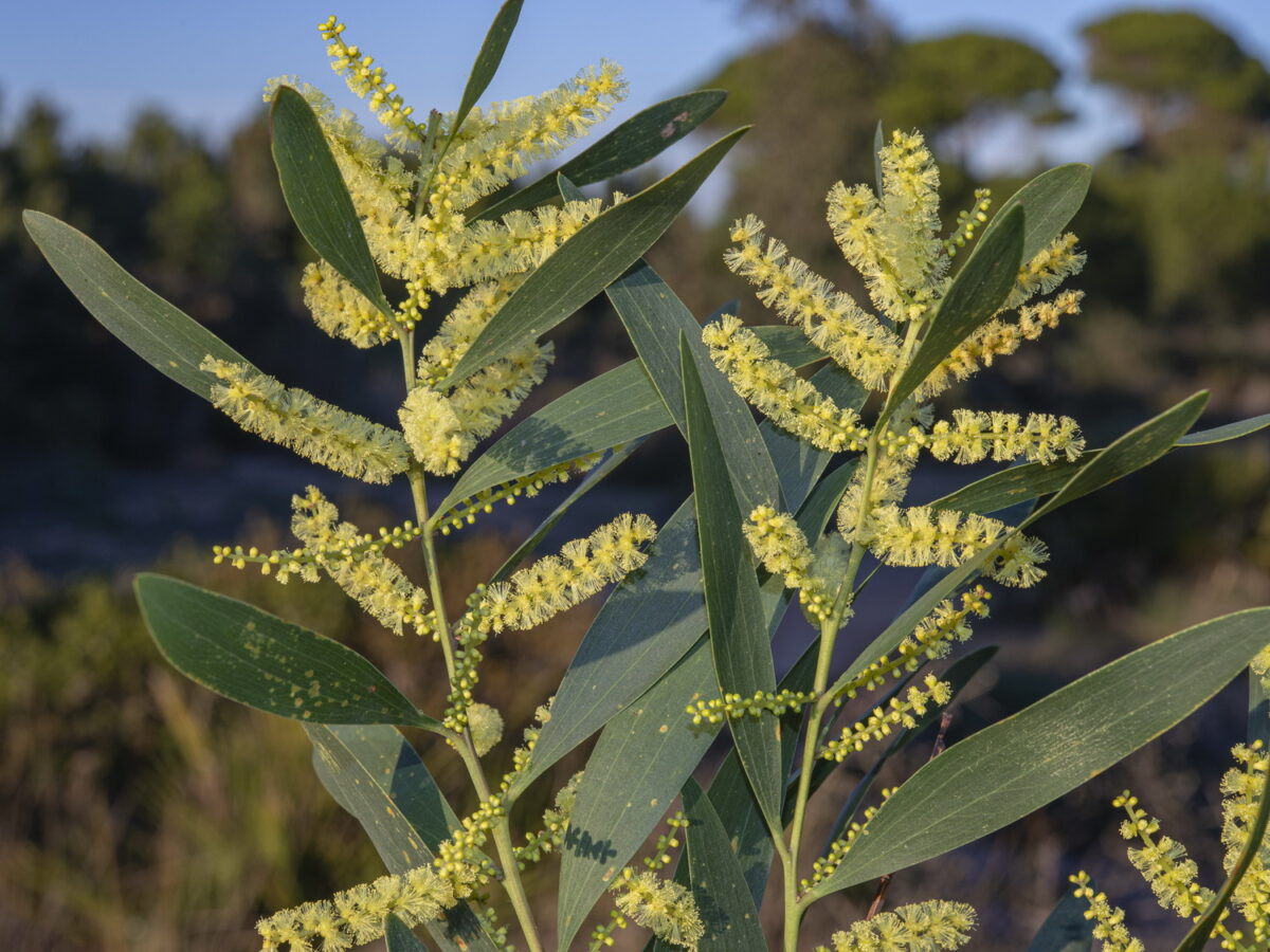 Perennifolia, inerme. Hojas sin estípulas, reducidas a filodios laminares de 0,2–1,5(2) cm de anchura, con un nervio medio prominente y una glándula marginal en la cara adaxial y por encima de la base. Inflorescencias en glomérulo globoso de 5–8 mm de diámetro, con pedúnculos de 2–5 mm; conflorescencias con 4–15 glomérulos, racemiformes y axilares o paniculiformes al final de los tallos, con brácteas ± persistentes, pelosas. Flores actinomorfas, pentámeras, amarillas. Cáliz 0,5–0,7 mm, campanulado. Corola 1,2–1,5 mm. Estambres muy exertos. Legumbre hasta 12 cm, comprimida, ± recta, contraída entre las semillas. Semillas parduscas, con funículo pardo rojizo que da casi dos vueltas a la semilla