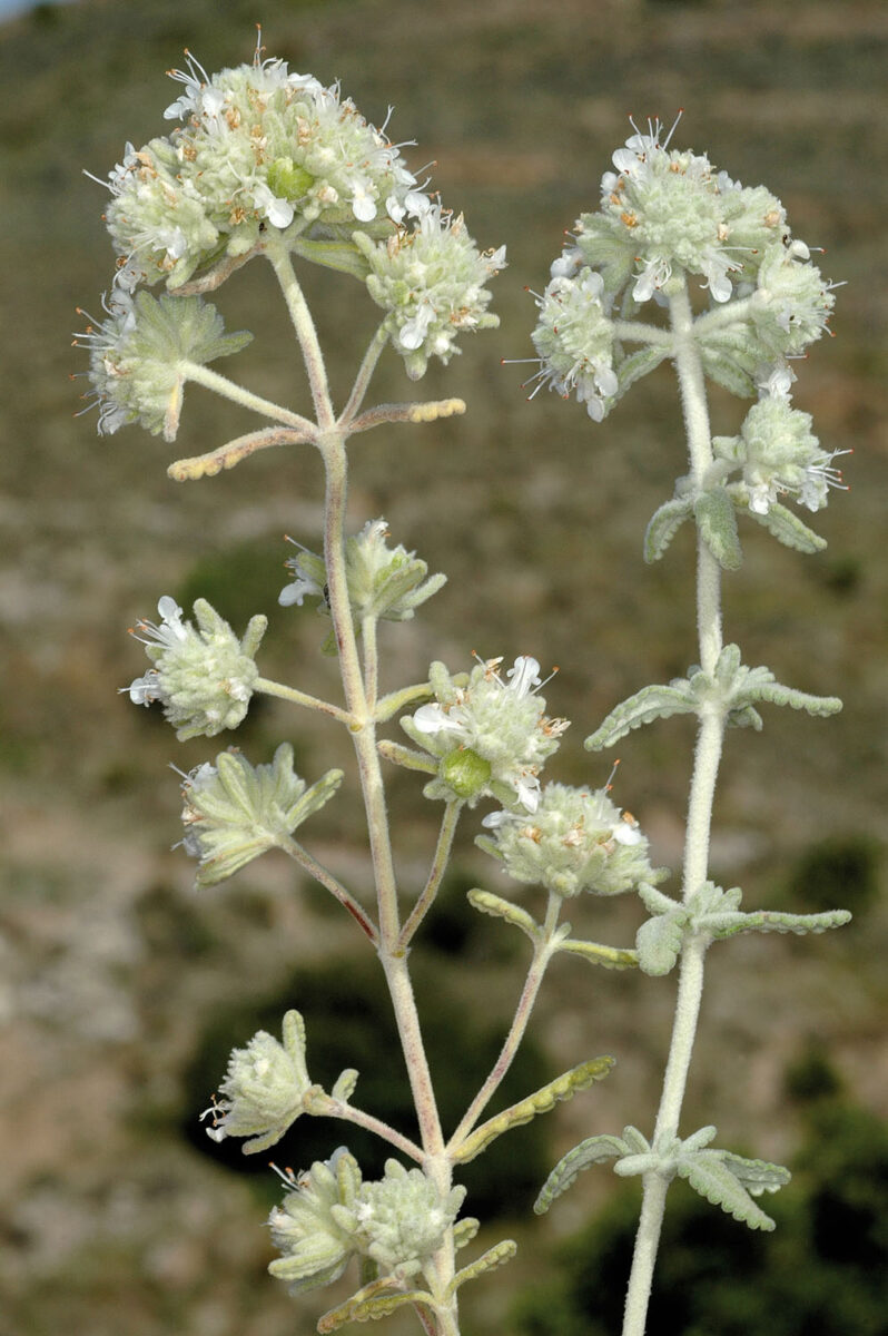 Mata con pelos ramificados; tallos de erectos a ascendentes, blanquecinos, verde–amarillentos, grisáceos o amarillos, pubescentes o tomentosos. Hojas (5)8–15(30) x (1,5)3–4(7,5) mm, opuestas o en verticilos de tres, sésiles, oblongas, lanceoladas o lanceolado–lineares, crenadas desde el tercio inferior o desde la mitad. Inflorescencia en pseudopanícula de cabezuelas ovoides y pedunculadas, o tirso. Flores zigomorfas, hermafroditas o femeninas (ginodioecia), pentámeras. Cáliz (4)4,5–5(6) mm, tubular, con 5 dientes, al menos los inferiores cuculados y/o con mucrón terminal o dorsal. Corola 6,5–9 mm, unilabiada, blanca, crema o rara vez amarillenta; lóbulos 5, los latero–posteriores oblongos y glabros. Núculas 1–2(3), reticuladas