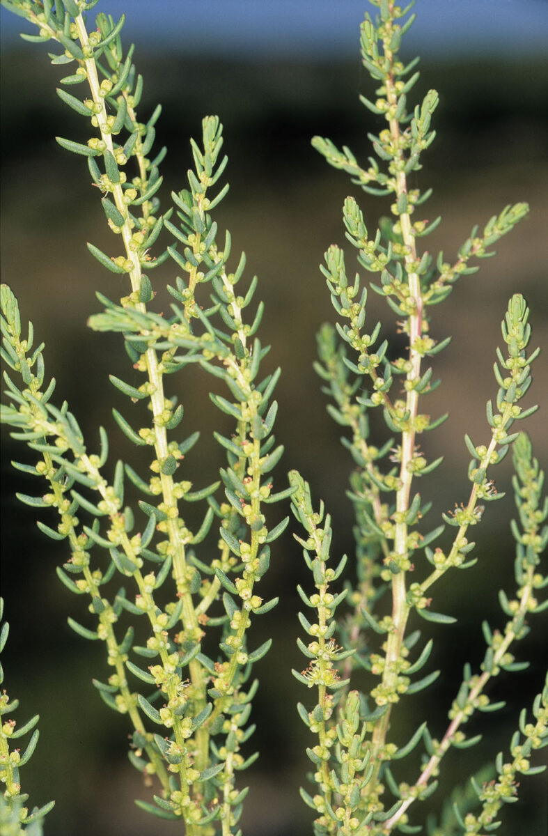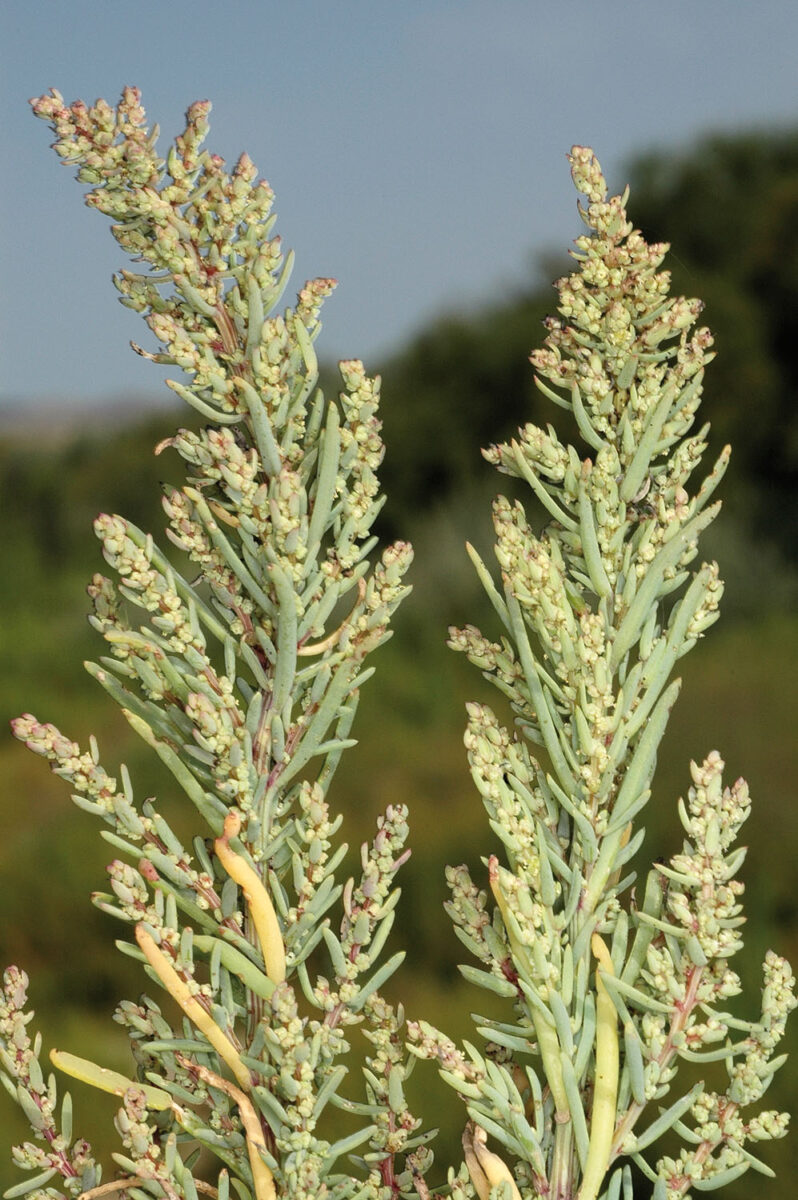 Anual, glabra, salvo en las axilas de las hojas. Tallos erectos, ramificados desde la base. Hojas alternas, carnosas, lineares, subcilíndricas, con reborde hialino y acumen de 0,5–1,5 mm, a veces caduco en la madurez. Flores < 3,5 mm de diámetro, hermafroditas y femeninas, pentámeras, dispuestas en glomérulos axilares con 1–3 flores cada uno; brácteas foliáceas, bractéolas pequeñas y escariosas. Tépalos 5, engrosados, oblongo–agudos, de ápice incurvo. Estambres 5. Ovario súpero, con 2–3 estigmas filiformes. Fruto aquenio. Semillas 1–1,4 mm, ± lenticulares, horizontales, lisas o ligeramente granulosas, negras