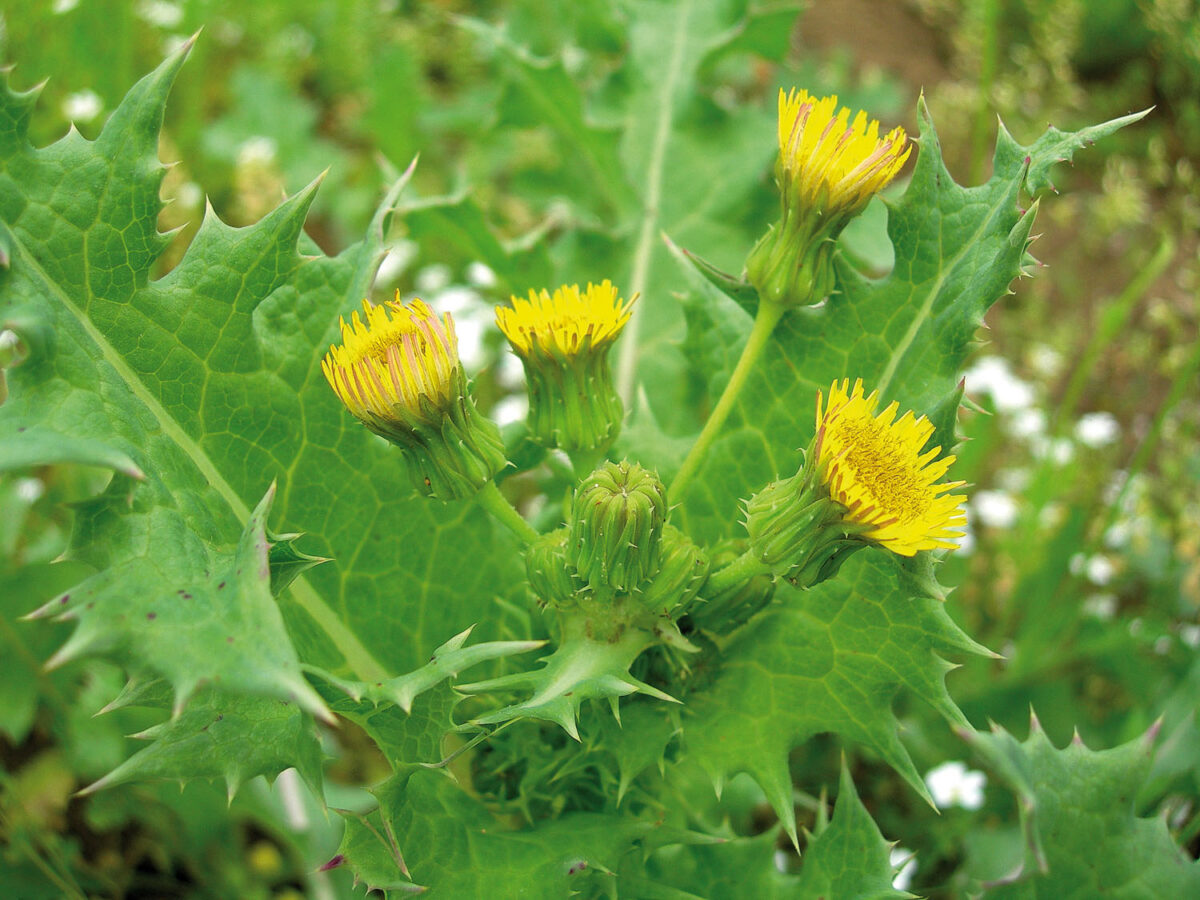Vivaz, rizomatosa, con tallos glabros. Hojas alternas, largamente oblongas u oblongo–lanceoladas, dentadas o a veces pinnatífidas, con dientes espinulosos, a menudo ± retrorsos; las basales pecioladas, el resto sésiles, con aurículas redondeadas y obtusas. Capítulos homógamos, terminales, pedunculados, 7–12 en cimas umbeliformes; involucro 7–11 mm, con varias filas de brácteas, las externas lanceoladas. Flores liguladas, amarillas, con el limbo más largo que el tubo; anteras 2,5–3,5 mm. Aquenios 2,5–3,5 mm, comprimidos, elípticos, algo rugosos transversalmente, de márgenes marcadamente engrosados, con 1 costilla prominente en una cara y 1–2 en la otra. Vilano 6–7,5 mm, de pelos sedosos, escabriúsculos, los externos más finos, capilares, persistentes; los internos caedizos