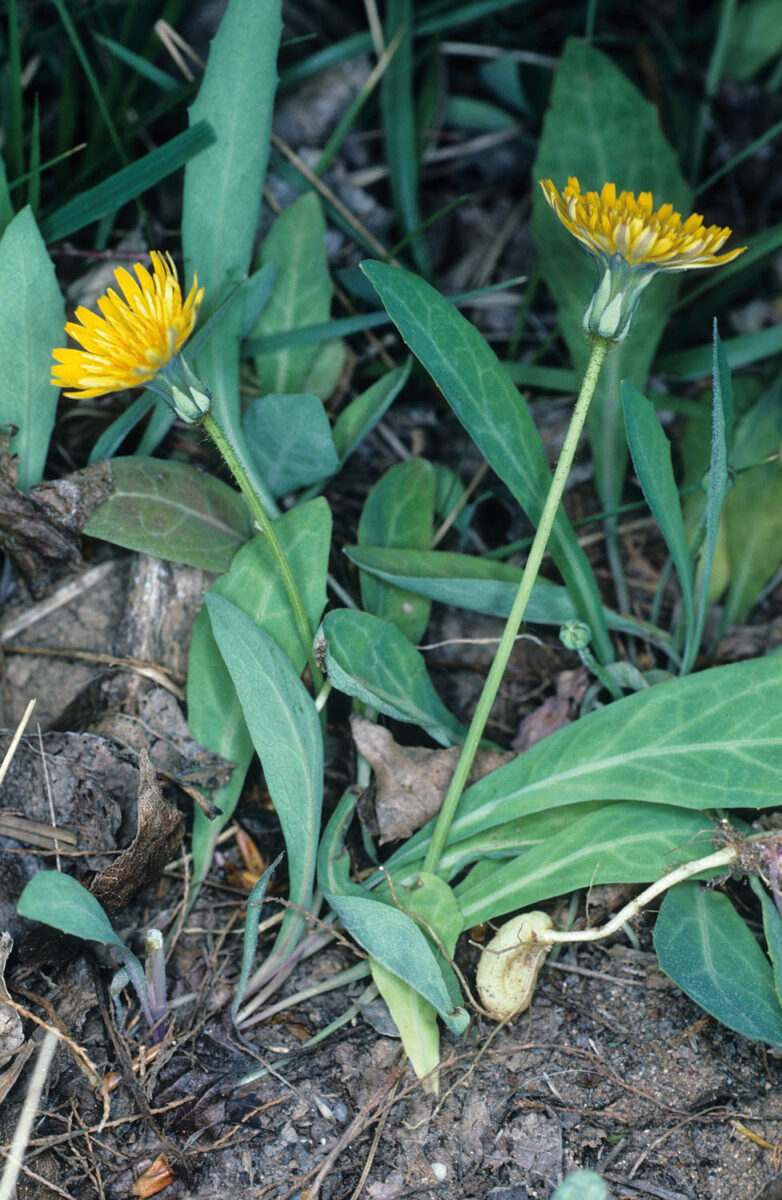 Vivaz, escaposa, con estolones subterráneos provistos de pequeños tubérculos y con pelos glandulíferos negros en la parte superior. Hojas por lo general todas basales, oblongas, elípticas u obovadas, largamente pecioladas. Capítulos homógamos, terminales, solitarios; involucro 9–17 mm, con varias filas de brácteas linear–lanceoladas, con pelos glandulíferos en el dorso; receptáculo sin escamas interseminales. Flores liguladas, amarillas, a menudo de dorso rosado. Aquenios 3–4,5 mm, fusiformes, atenuados en pico corto, con 4 estrías longitudinales; vilano 8–11 mm, de pelos simples, escabriúsculos, blancos