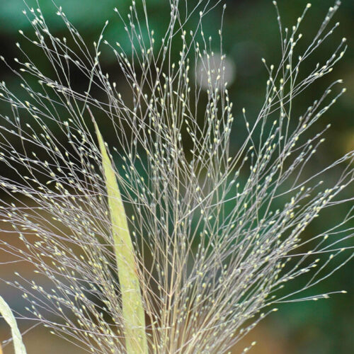 Hojas pubescentes; lámina hasta 30 cm x 9 mm, plana; lígula membranácea, corta, fimbriada. Panícula hasta 25 cm, muy laxa, difusa, de ramas filiformes, escábridas, flexuosas, patentes. Espiguillas 1,8–2 mm, con pedúnculos muy largos y 2 flores, la inferior masculina, la superior hermafrodita; glumas muy desiguales, la inferior c. 0,9 mm, lanceolada, aguda, con 5 nervios, la superior tan larga como la espiguilla; lema de la flor inferior tan largo como la espiguilla, membranáceo, con 7 nervios; lema de la flor superior c. 1,5 mm, coriáceo; pálea de la flor inferior ausente, la de la flor superior tan larga como su lema. Anteras c. 0,7 mm
