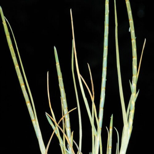 Lámina de las hojas 2–6 cm x 1–2 mm, plana o plegada; lígula 0,5–1 mm, truncada. Espiga 2–14 cm, con raquis excavado, a menudo envuelta en la base por la vaina de la hoja superior del tallo; espiguillas 5–7 mm, unifloras, sésiles, emplazadas en las excavaciones del raquis; una gluma por espiguilla, excepto la superior que tiene 2, coriáceas, con un surco basal y de ápice agudo; lema 3,5–5 mm, membranáceo, más corto que la gluma; pálea casi tan larga como el lema. Anteras c. 2 mm