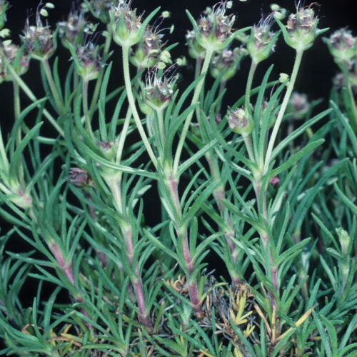 Mata leñosa, ramificada, pubescente, con pelos cortos no glandulíferos y muy pocos pelos glandulíferos. Hojas 10–60 x 1–2 mm, opuestas, lineares, subtriquetras, enteras, pubescentes, verde–oscuras. Inflorescencias axilares, con pedúnculo de 2–10 cm, terminados en una espiga de 6–15 mm, ovoidea, con 5–12 flores. Brácteas con nervio medio que alcanza el ápice, agudas, de margen escarioso. Flores tetrámeras, hermafroditas. Sépalos desiguales, soldados en la base. Corola escariosa; tubo 4–7 mm, rugoso, glabro; lóbulos 2,5–3 mm, lanceolados, glabros. Cápsula (pixidio) 4–5 mm, con 2 semillas naviculares de 1,7–2,5 mm