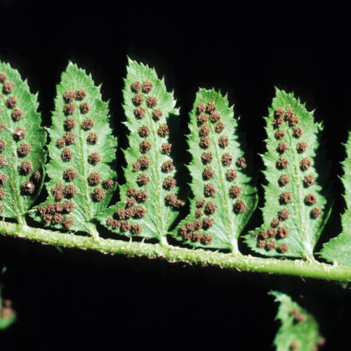 Rizoma grueso, corto, cubierto de páleas. Frondes fasciculadas, persistentes; pecíolo muy corto, densamente paleáceo; lámina 1–pinnada, con hasta 40 pares de pinnas, linear–lanceolada, más ancha en el centro; pinnas imbricadas, enteras, pecioluladas, falciformes, de margen espinuloso y base asimétrica, con lóbulo basal superior auriculado. Soros orbiculares; indusio peltado, dentado. Esporas 35–40 µm, monoletas, equinuladas