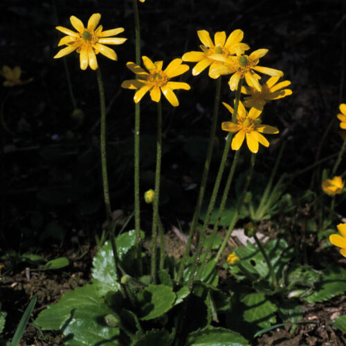 Raíces cilíndricas, numerosas. Tallo escapiforme, afilo, peloso en la base, adpreso–pubescente en la parte superior. Hojas 2,5–6 x 1,5–3(4,5) cm, todas basales, con vaina dilatada y pecíolo más corto que el limbo; limbo ovado u ovado–elíptico, con nervios marcados, marcadamente dentado, esparcidamente peloso. Flores (17)20–30(35) mm de diámetro, actinomorfas, hermafroditas, solitarias, terminales; sépalos 5, patentes, pelosos; pétalos 7–9(12), obovado–oblongos, mucho más largos que los sépalos, amarillos; estambres numerosos; gineceo apocárpico, súpero. Fruto poliaquenio, ovado; receptáculo glabro; aquenios ligeramente comprimidos, sin reborde, con pico corto y curvo