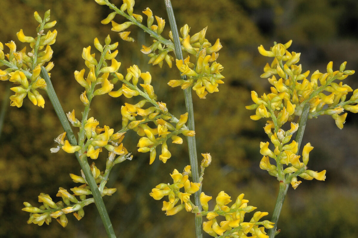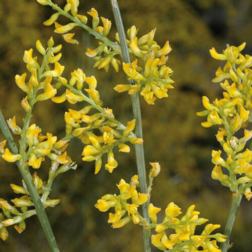 Ramas de sección cuadrangular, seríceo–plateadas cuando jóvenes, más tarde escábridas. Hojas alternas, unifolioladas, efímeras. Inflorescencias en racimos laterales, solitarios o geminados, con 8–17 flores papilionadas. Cáliz 2–3,2 mm, ligeramente campanulado, bilabiado, glabro. Corola 4–5(6) mm, glabrescente, amarilla. Estambres 10, monadelfos, 4 cortos, 5 medianos y 1 largo. Ovario glabro. Fruto 7–12 mm, indehiscente, ovoideo o subgloboso, con apículo muy pequeño, sin quilla en la línea de sutura, con pericarpo esponjoso y seco en la madurez, de color amarillo pajizo, persistente de ordinario en la planta después de la madurez, monospermo (rara vez con 2 semillas)
