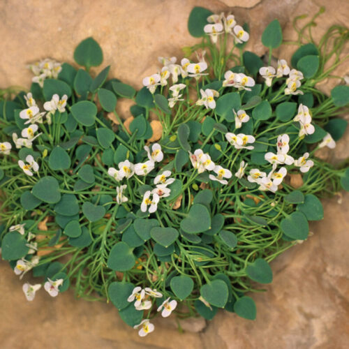 Crasa, frágil, glabra. Hojas alternas, simples, largamente pecioladas; limbo 4,5–9,5(13) x 4,5–9(13) mm, cordiforme u ovado. Racimos con 7–13 flores, corimbiformes. Flores zigomorfas, hermafroditas; sépalos 2, de 1,1–1,8 x 0,5–0,8 mm, libres, petaloideos, caducos. Pétalos 4, libres, blancos; los externos 4,5–5,5 x 4,3–6 mm, ampliamente espatulados, emarginados, el superior con una mancha amarilla central; los internos con una mancha amarilla apical, roja en la marchitez. Estambres 2, cada uno con 3 anteras. Ovario súpero. Frutos 2,1–3,2 x 1–1,5 mm, aplanados, elipsoidales, generalmente monospermos