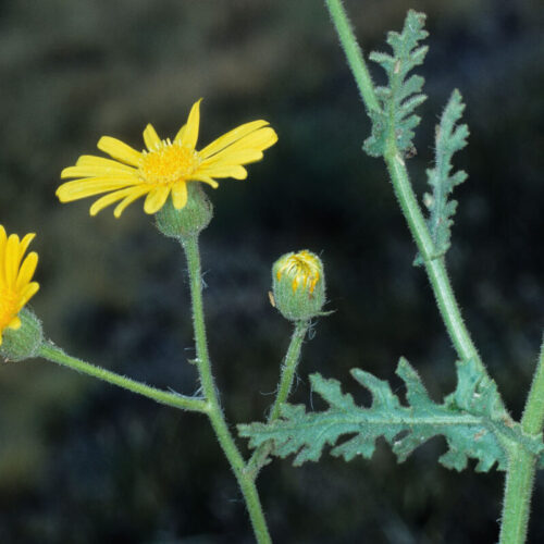 Vivaz, densamente glandulosa. Tallos erectos, ramificados generalmente en la mitad superior. Hojas alternas, pinnatífidas o pinnatipartidas, con segmentos irregularmente dentados; las inferiores pecioladas, las superiores sésiles, auriculadas, amplexicaules. Capítulos (20)25–35 mm de diámetro, radiados, anchamente campanulados, largamente pedunculados, en corimbos laxos; involucelo con 2–5 bractéolas estrechamente lineares o filiformes; brácteas involucrales 7–8 mm, lineares, densamente glandulosas; receptáculo desnudo. Flores amarillas, las externas 13–20, hemiliguladas, con limbo de 8–13 mm; las internas flosculosas, hermafroditas. Aquenios 2,5–3 mm, oblongoideos, con costillas estrigosas; vilano 5,5–6 mm, de pelos tenues, escabriúsculos, caedizos