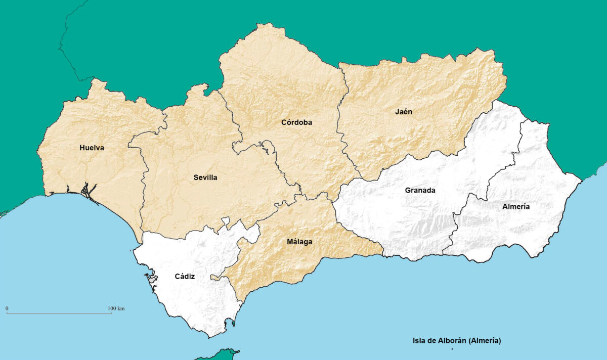 Córdoba, Huelva, Jaén, Málaga, Sevilla