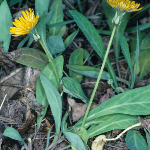 Vivaz, escaposa, con estolones subterráneos provistos de pequeños tubérculos y con pelos glandulíferos negros en la parte superior. Hojas por lo general todas basales, oblongas, elípticas u obovadas, largamente pecioladas. Capítulos homógamos, terminales, solitarios; involucro 9–17 mm, con varias filas de brácteas linear–lanceoladas, con pelos glandulíferos en el dorso; receptáculo sin escamas interseminales. Flores liguladas, amarillas, a menudo de dorso rosado. Aquenios 3–4,5 mm, fusiformes, atenuados en pico corto, con 4 estrías longitudinales; vilano 8–11 mm, de pelos simples, escabriúsculos, blancos