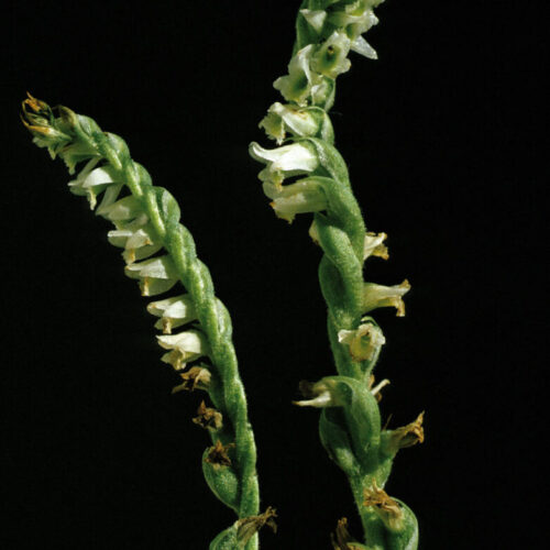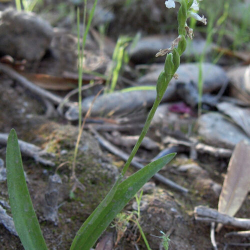 Tubérculos 2–4, oblongo–elipsoideos. Tallo con pelos glandulíferos. Hojas 2–4 cm, dispuestas en roseta basal situada al lado del tallo fértil, ovado–elípticas; hojas del tallo fértil bracteiformes. Inflorescencia 2,5–11 cm, con abundantes pelos glandulíferos; brácteas más largas que el ovario, elípticas, acuminadas, foliáceas. Flores llamativamente dispuestas en hélice, blanquecinas, sin espolón. Sépalos libres, lanceolados, subagudos. Pétalos laterales conniventes en una gálea con el sépalo central. Labelo 4–6 x 2,5–3,5 mm, algo más largo que los sépalos, finamente crenado, indiviso, curvado hacia abajo, con 2 aurículas basales, verde amarillento con reborde blanquecino. Fruto cápsula, erecto, con 3 costillas