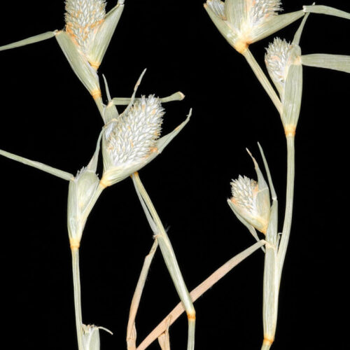 Lámina de las hojas 0,5–6 x 0,2–0,5 cm, plana, plegada en los extremos, algo punzante; vaina inflada, lígula pelosa. Panícula 5–20 mm, más larga que ancha, densa, envuelta en la base por la vaina de la hoja superior. Espiguillas 2,6–3,3 mm, subsésiles, unifloras, muy comprimidas; glumas subiguales, aquilladas, más cortas que la flor, la inferior 2,2–2,8 mm, la superior 2,5–3 mm; lema 2,8–3,3 mm, uninervado, mútico; pálea casi tan larga como el lema. Estambres 3; anteras c. 1 mm