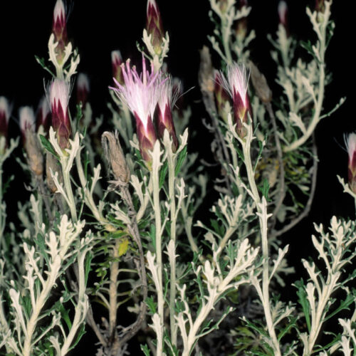Mata grisáceo–tomentosa, ± cespitosa. Tallos arqueado–ascendentes, ramificados, de jóvenes blanco–tomentosos. Hojas alternas, estrechamente obovadas, pinnatífidas, de bordes no revueltos, de haz verde–oscuro y envés blanco–tomentoso. Capítulos discoides, terminales; involucro 14–17 x 6–7 mm, cilíndrico, algo tomentoso o glabrescente, con varias filas de brácteas de color púrpura oscuro; receptáculo setáceo. Flores flosculosas, rosadas. Aquenios 4–5,5 mm, oblongoideos, algo costillados, con anillo apical; vilano 13–20 mm, caduco, de pelos escabriúsculos, ramificados en el tercio basal, que superan largamente al involucro