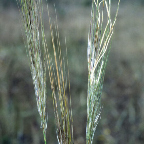 Hojas de vaina glabra, escábrida o pubescente; lámina 2–20 cm, plana o convoluta, de haz pubescente y envés glabro o pubescente; lígula 0,2–0,8(1) mm, escábrida. Panícula 3–20(27) cm, densa. Espiguillas unifloras, con pedúnculos cortos (hasta 8 mm), escábridos, rectos; glumas subiguales, setáceas, glabras, la superior 12–21(26) mm, la inferior 14–24(28) mm; callo (1)1,5–4 mm, pubescente, con 2 líneas laterales glabras, punzante; lema (2)2,5–6,5(7) mm, pubescente; arista 3,5–14(18,5) cm, bigeniculada, escábrida, sinuosa en la madurez; pálea 0,7–2,5(3) mm, aguda, de dorso glabro. Anteras hasta 4 mm, glabras en el ápice; cariopsis hasta 6 mm, fusiforme