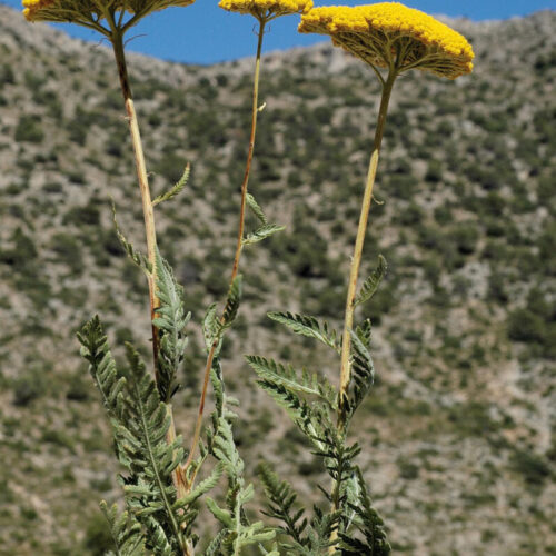 Vivaz, rizomatosa, pubescente. Tallos erectos, ramificados en el tercio superior. Hojas alternas, pecioladas, punteado–glandulosas, pubescentes sobre todo por el envés, pinnatisectas; segmentos regularmente pinnatipartidos, con lóbulos ovados u oblongos, agudos, aserrados. Capítulos 7–9 mm de anchura, discoides o radiados, muy numerosos, en corimbos compactos terminales; involucro con varias filas de brácteas glabrescentes, las internas de ápice obtuso, escarioso. Flores todas flosculosas, hermafroditas, amarillas; a veces las externas hemiliguladas, aunque poco aparentes, con limbo < 2 mm, amarillo. Aquenios 1,2–1,8 mm, obcónicos, costillados, con una corona de 0,2–0,4 mm