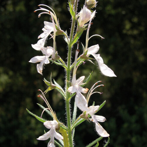 Tallos hirsutos o pubescentes, a veces los florales glabrescentes. Hojas 25–35 mm, tri–, penta– o multisectas, con segmentos de c. 30 x 0,5–2,5 mm, lineares. Inflorescencias en racimo laxo de verticilastros bifloros. Flores zigomorfas, hermafroditas, pentámeras. Cáliz (7)8,5–10(12) mm, tubular–campanulado, con 5 dientes iguales, planos, lanceolados, a veces mucronados. Corola 13–14 mm, unilabiada, blanca o rosácea, con 5 lóbulos. Núculas 4, reticuladas, pelosas