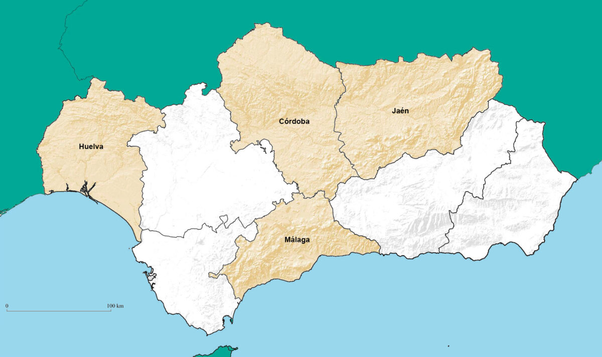 Córdoba, Huelva, Jaén, Málaga