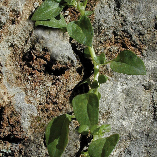 Anual, monoica, glabrescente, tierna, frágil, algo crasa. Tallos ± procumbentes, obtusamente cuadrangulares, nudosos. Hojas 10–20 x 5–20 mm, las basales opuestas, las superiores alternas, pecioladas, ovadas u ovado–rómbicas, enteras de margen hialino y antrorso–escábrido; estípulas membranáceas, soldadas y envainantes. Flores pequeñas, unisexuales, axilares u opositifolias, subsésiles, verdosas, solitarias o en grupos de 2–3; las masculinas con 2(3) tépalos enrollados, soldados en la base, y 7–12 estambres con anteras dorsifijas; las femeninas con perianto tubuloso, con 2–4 dientes, y ovario ínfero unilocular. Aquenio 1,7–2,2 mm, globoso, pardo–oscuro, con manchas blanquecinas