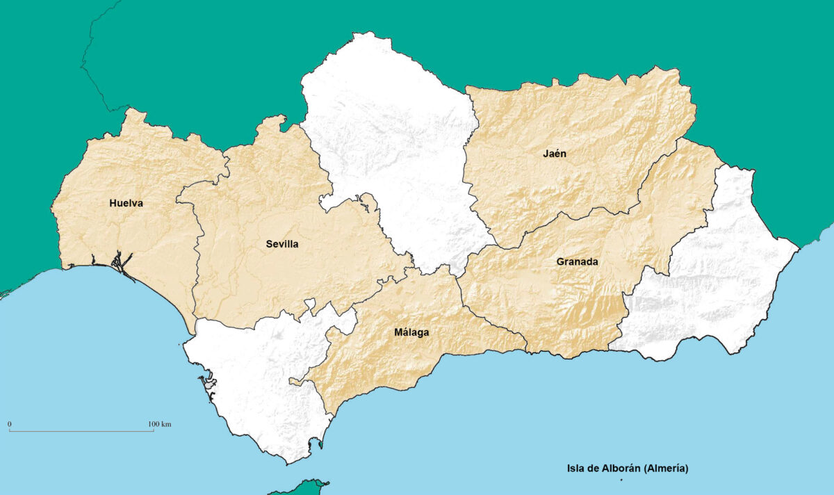 Granada, Huelva, Jaén, Málaga, Sevilla