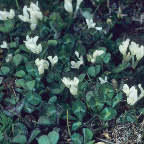 Tallos procumbentes, pubescentes, con pelos patentes. Hojas trifolioladas; folíolos hasta 30 x 30 mm, obcordados, emarginados, denticulados, pubescentes; estípulas lanceoladas, membranáceas, generalmente glabras. Inflorescencias capituliformes, axilares, sin bractéolas, con 2–6 flores fértiles, entre las que aparecen en la fructificación flores estériles reducidas a cálices macizos y dientes plumosos, que se hacen reflejas y rodean los frutos; pedúnculos ascendentes en la floración y procumbentes en la fructificación, colocando la infrutescencia en situación hipogea. Cáliz de las flores fértiles cilíndrico, glabro o pubescente en la parte distal, con c. 20 nervios; garganta abierta, glabra; dientes iguales o subiguales, lineares, pubescentes, situados en el labio inferior; el de las flores estériles notablemente subiguales. Corola 7–12 mm, papilionada, blanca, glabra. Androceo diadelfo. Legumbre coriácea, con 1 semilla. Semillas lisas, violáceas o negras