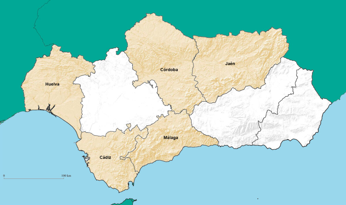 Cádiz, Córdoba, Huelva, Jaén, Málaga