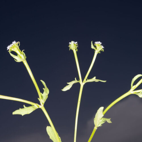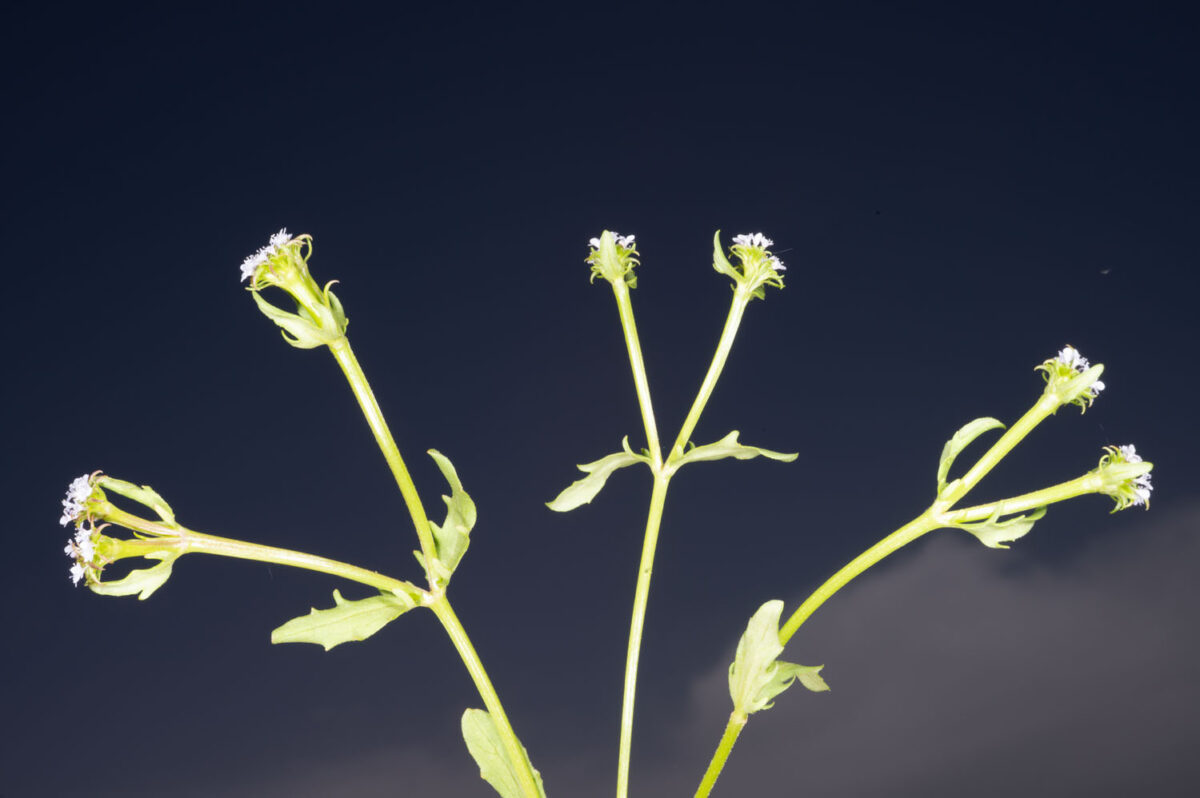 Tallos simples o con 1–2(3) dicotomías, glabros, a menudo algo papilosos en el tercio basal. Hojas 5–35(38) × 1–12 mm, glabras, de márgenes a menudo papilosos; las basales pecioladas, oblongo–lanceoladas o espatuladas, enteras o laxamente inciso–dentadas, obtusas; las caulinares ± sésiles, oblongo–lanceoladas, lanceoladas o estrechamente elípticas, de dentadas a pinnatífidas al menos hacia la base, obtusas. Inflorescencia con ramas dicasiales claramente engrosadas en la fructificación, las terminales con glomérulos capituliformes paucifloros. Flores subactinomorfas, hermafroditas, pentámeras. Cáliz reducido a 3 dientes inconspicuos, marcadamente acrescentes y persistentes a modo de cuernecillos. Corola 2–2,5 mm, con tubo giboso hacia la mitad, blanquecino, y lóbulos subiguales, blanquecinos o de un azul violáceo. Aquenios dimórficos, trígonos, ± granulosos, glabros, con 3 cuernos desiguales en el ápice; los de las flores axilares de las ramas dicasiales de (5,5)7–9 mm, oblongoideos, de sección ± elíptica, con lóbulo fértil culminado por un cuerno de (0,3)0,5–1,7 mm; los de las cimas glomerulares de 5–7 mm, obovoideos, trígonos, con cuernos de 1–4 mm, desiguales, uno de ellos mucho mayor, arqueados