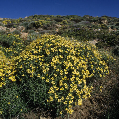 Matas pulvinulares, espinosas, glabrescentes o setoso–escábridas, con pelos simples. Tallos muy ramificados, densamente intricados, de corteza blanquecina, con espinas de 4–20 mm, rígidas y patentes. Hojas 3–14 x 1–2 mm, lineares, setoso–híspidas al menos en el margen hacia la base. Racimos ebracteados, cortos, paucifloros (3–5 flores). Flores actinomorfas, hermafroditas, tetrámeras; sépalos 5–7 mm, erectos, ligeramente concrescentes en la parte media, setoso–híspidos al menos en el ápice; pétalos 8–16 x 5–7 mm, con limbo de suborbicular a obovado y uña c. 10 mm, de amarillos a blanquecinos, con venas púrpuras; estambres 6, tetradínamos. Frutos en silícula angustisepta, con 2 artejos, el inferior de 3–5(7) x 2–4 mm, elipsoidal, reticulado en el ápice, glabro; artejo superior 5–8 x 2–4 mm, lingüiforme, agudo, glabro. Semillas 1 por lóculo, de 2–3 mm, subglobosas, pardo–rojizas