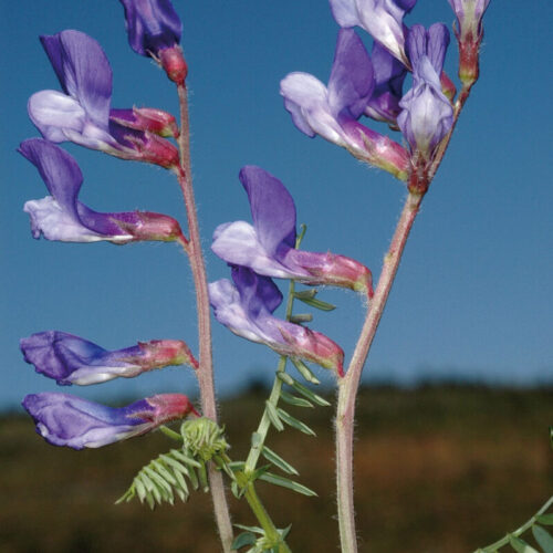 Glabra o laxamente pubescente. Hojas 23–54 mm, con 4–9 pares de folíolos, terminadas en un zarcillo simple o ramificado; estípulas hemihastadas, de borde entero o inciso–dentado; folíolos 7–28 x 1–4 mm, oblongo–elípticos o lineares, obtuso–mucronados o subagudo–acuminados, rara vez emarginados. Racimos axilares con 4–12 flores agrupadas en el 1/2–1/3 distal; pedúnculo 7–23 cm, mucho más largo que la hoja axilante. Flores 14–24 mm, papilionadas. Cáliz 8–10 mm, zigomorfo; dientes desiguales, triangulares, agudos, los superiores 1–2 mm, más cortos que el tubo, los inferiores 3,5–5,5 mm, tan largos o más largos que el tubo. Pétalos de color púrpura, violeta o azul oscuro, rara vez rosados o blanquecinos. Legumbre 27–35 x 5–7 mm, oblongo–elipsoidea o ensiforme, más ancha hacia el ápice, ligeramente comprimida, subsentada, glabra, con 2–8 semillas. Semillas 4–4,5 mm; hilo 2,5–4 mm, 1/4–1/3 del contorno de la semilla